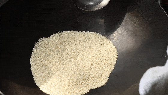 阿飞唠叨:不停的翻炒,一定一定不能偷懒噢!全程小火!不然会糊的。等芝麻略变色,闻到一股芝麻香就可以关火了