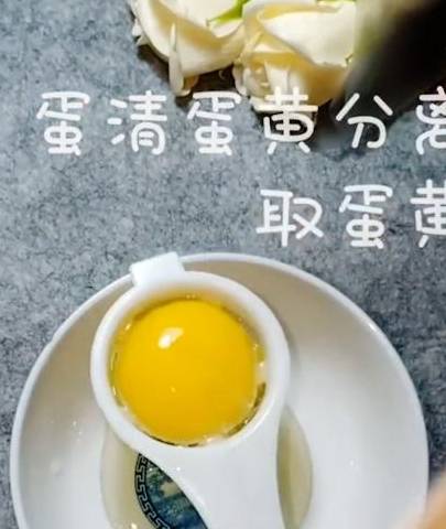 8.蛋清蛋黄分离,取蛋黄,打散。