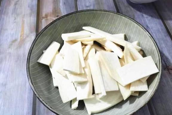 1、杏鲍菇洗干净,切成片,待用。