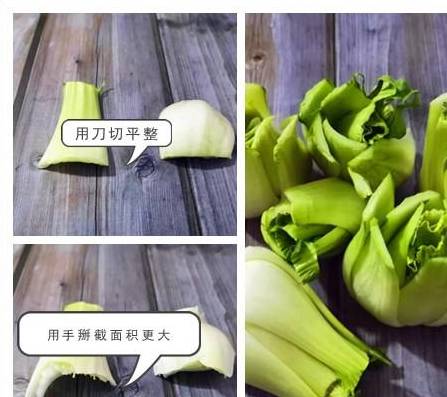 1、为什么要青菜梗,而不是用刀切,这二者有区别吗?