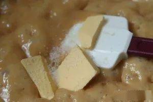 然后加入黄油和海盐继续加热