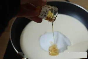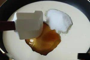 淡奶油、砂糖、麦芽糖和蜂蜜全部倒入不粘锅。