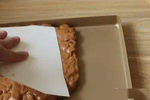倒入28*28的烤盘不粘的哦,如果是普通的底部垫一个高温布即可!