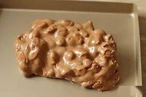 杏仁加进去后翻拌均匀成团