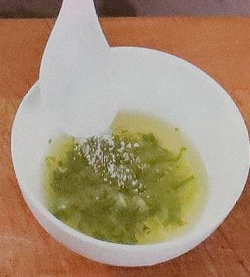 五。再倒入碗中,加入精盐,味精,胡椒粉,少许的香油拌匀,成香葱汁。