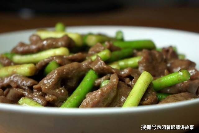 牛里脊,盐鸡精,生抽料酒,蚝油,香油,小苏打,胡椒粉,淀粉,蒜薹。