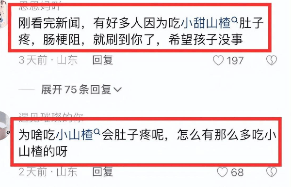 当然了,“山东涛子”对外表示“食物中毒和误食药物的可能性很小”,那么小月月的病因可能不在吃的方面上,而网友们之所以会认为是“小甜山楂”,主要是因为这段时间案例较多!