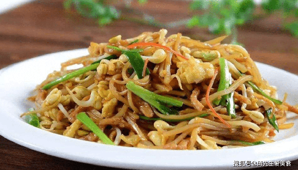 如四川民间和餐馆的干煸黄豆芽,煽炒时加点斓辣壳,咸鲜香辣占齐了,佐酒下饭都很适宜。川菜家常海参,垫底作配的黄豆芽经煸炒后,与海参一起进嘴,海参的柔软,豆芽的酥脆,咸鲜微辣的家常味感,确实算得上美食享受。绿豆芽的烹调,也是可荤可素。