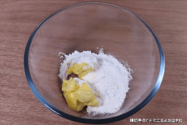 黄油室温软化,将糖粉和盐混合后,过筛到黄油中,用刮刀搅拌均匀