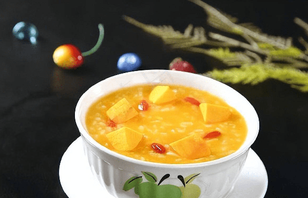 制作步骤:买来的南瓜清洗干净之后,去皮改刀切成小块备用,苞米面提前用清水化开搅拌均匀。枸杞清洗干净,之后锅中加入5碗清水,煮开之后,下入苞米面,枸杞,和南瓜块,一起小火炖煮半个小时。半小时之后可以开锅记得检查一下,看看南瓜是否熟透,如果没熟加入少量开水,继续炖煮一小会就可以。