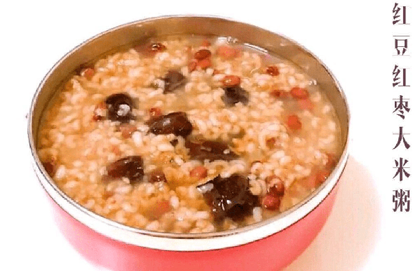 制作步骤:将红枣洗净,之后用小刀将红枣切开,取出中间的枣核,将大枣放入一个碗中备用。红豆与米用清水淘洗干净,之后锅中加入5碗清水(红豆比较不容易煮熟因此要水多一点)煮开水,然后将红豆,大枣,大米倒入锅中,再次炖煮半个小时以后,就可以出锅食用了。