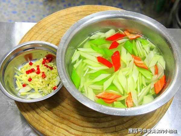 ,去皮后切成细丝;放入盆中加入