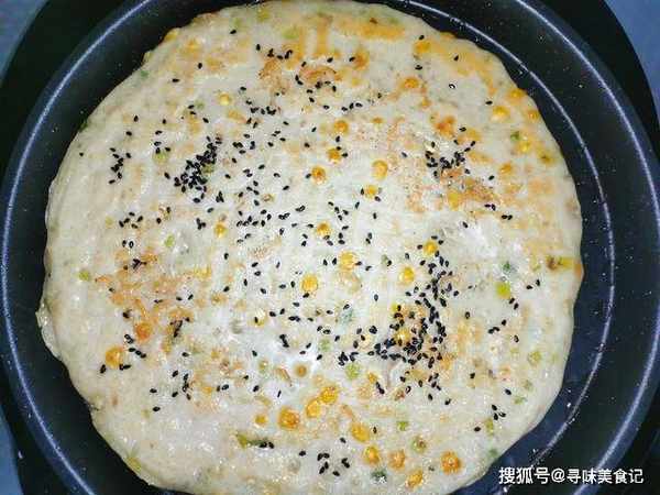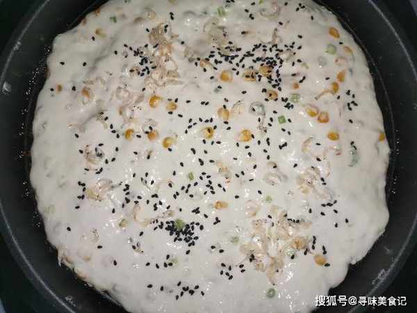 食材准备:200克普通面粉,200克清水,3克酵母粉,3克食盐,适量熟黑芝麻,适量虾皮,适量玉米粒,葱花末