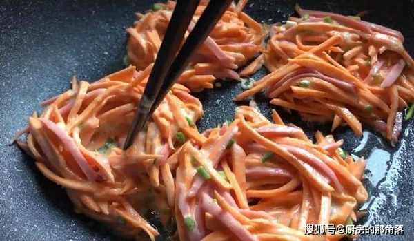 9.这样煎出来的红薯饼健康营养,好吃还不上火,老人小孩都能吃,拿来做早餐也是不错的选择。
