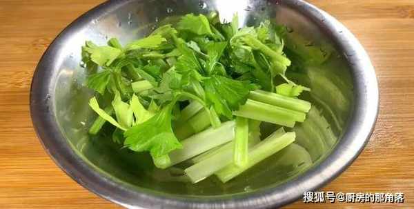 4.芹菜处理好,洗净后切成5公分左右的段,备用。