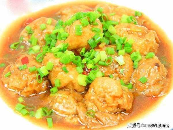 汤汁烧开以后,把油面筋放入锅中,用小火煮8分钟,然后转大火收汁,再加入一点水淀粉增加汤汁的浓度,汤汁收成粘稠状时出锅装盘,均匀撒上葱花美味即成。
