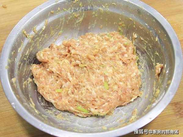 一段葱白切成葱花;一块生姜切成姜末;二刀肉300克剁成肉末,加入葱花、姜末、食盐2克、鸡粉1克、白糖少许、料酒5克、老抽2克、蚝油3克、胡椒粉1克,抓拌摔打2分钟,再加入半个蛋清、干淀粉,顺着一个方搅拌至馅料成团。