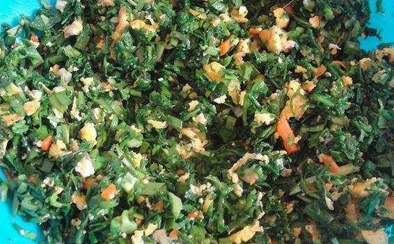 我们将新鲜把荠菜清洗几遍,将泥洗干净,锅里加入适量的水,等到水烧开以后,再滴上几滴油,放进去烫一下就可以了,捞出来后将它放在凉水里,这样可以保持它的颜色,然后我们将荠菜淋干水分切碎,放到盆里。接着我们将准备好的五花肉洗干净以后将它剁碎,放入葱,姜,蒜,料酒,蚝油,胡椒,盐,然后再滴上少许的香油和鸡精,顺着一个方向使劲的搅拌均匀。