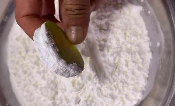 7.萝卜夹肉以后在缝隙上粘上一层干淀粉备用。