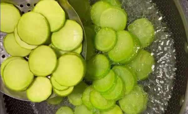 (水中加入油是为了让焯烫出来的萝卜更加的翠绿,看着更加有食欲。)