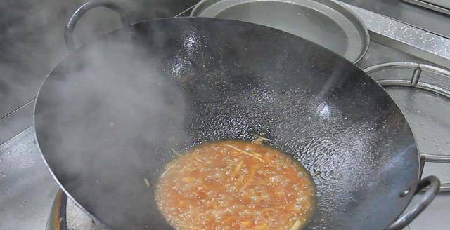烹饪过程中几乎少不了辛香料,例如炒菜前先下点蒜末爆香、麻油鸡汤放几片姜去寒、菜肴起锅前撒点葱末等,这些辛香料不仅是料理口感加分的秘密武器,做锅包肉也不例外,所有食材准备好后,起锅烧油,下入葱姜蒜爆香。