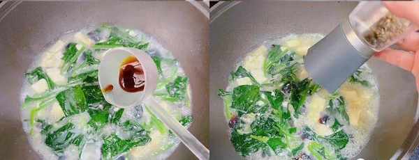 4、这道菠菜皮蛋汤,真的是鲜美又好喝,有菠菜的清香,又有皮蛋的香味,非常的有营养,每次我都可以喝掉两大碗汤水。喜欢这道汤水的人一定要尝试一下,是不可错过的一道家常菜。