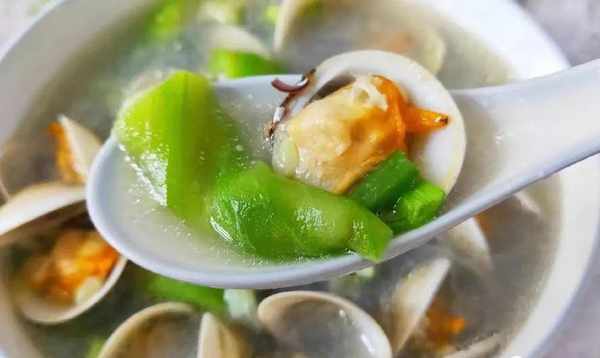 5、这道丝瓜蛤蜊汤非常的适合春天喝,汤水清爽不油腻,清补不上火,可以清热降火,还能润肺止咳。