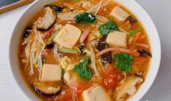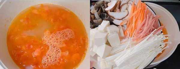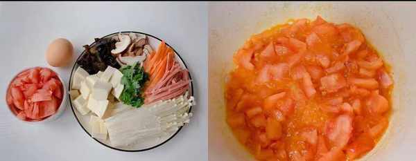 主要食材:金针菇、豆腐、番茄、鸡蛋、木耳、胡萝卜、香菇、火腿