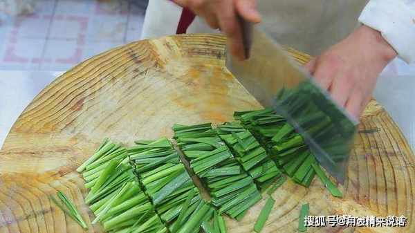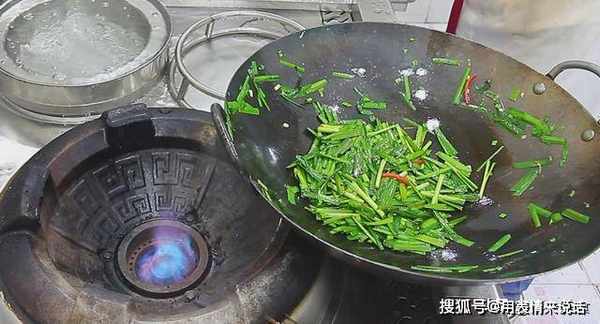 加入食盐,食盐不能加的太早,一定要韭菜断生后加入,加入过早,就造成韭菜析出水分,