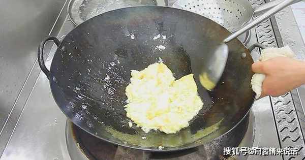 翻炒几下后倒出,倒出鸡蛋,控去多余的油。