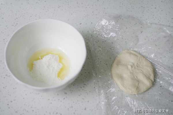 三、面团和好之后,在表面裹上一层一次性保鲜膜,放着醒面二十分钟。