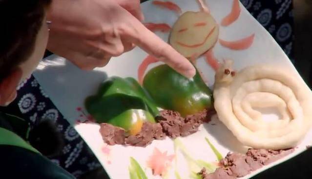 杜江的创意面食:嗯哼是属蛇的,所以杜江用面捏了一条小蛇,希望嗯哼每天生活在阳光下,开心快乐!