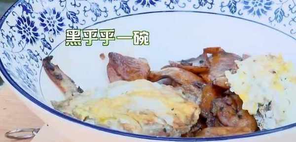 再看看陈小春的,画风就有点不一样了,肉和鸡蛋都烧糊了。完全就是黑暗料理啊,不过好在,家里有一个“超级捧场王”的小小春,再黑暗也不怕!