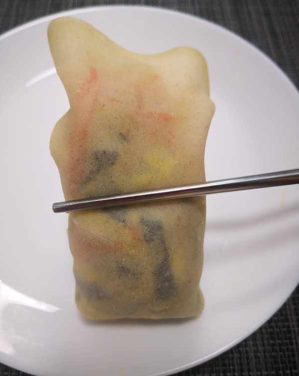 透过饼皮就能看见里面的馅料,足以说明饼皮很薄。