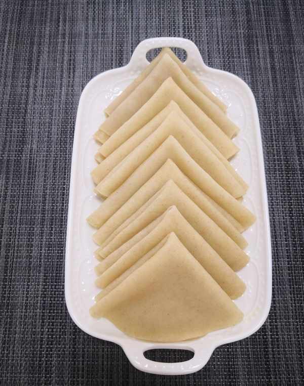 每一张饼都很薄,很有韧,加了粗粮后,补充膳食纤维,增加饱腹感、优化餐后血糖。