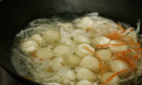 加入萝卜丝后加入提前做好的鱼丸。