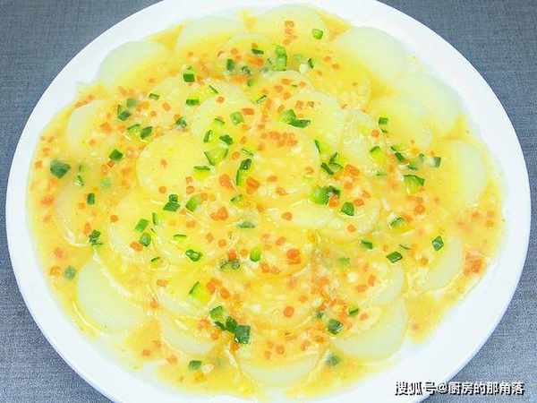 起锅烧油,油温5成热时倒入鸡蛋,小火煎制轻轻地摇晃锅,一面煎好以后翻面,蛋液全部定型以后倒出了控油。