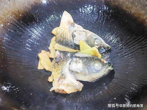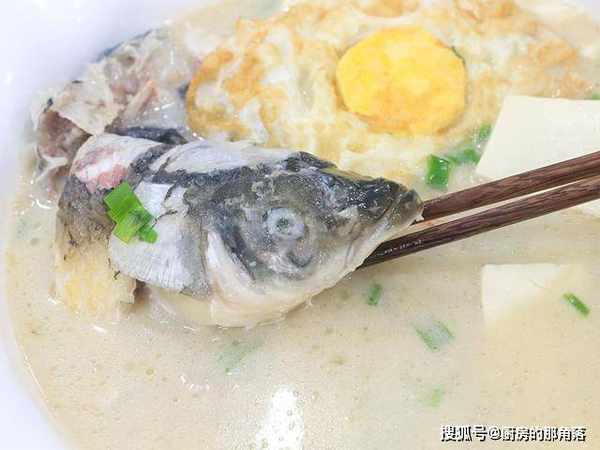 锅内再烧油,油温五成热时放入姜片和鱼头煎制,经常摇晃锅勤翻面,让鱼头均匀受热,鱼头煎至两面金黄时,往里面倒入适量的开水,放入煎好的鸡蛋,盖上锅盖开大火炖煮10分钟,把豆腐倒入锅中继续炖煮3分钟,然后加入食盐3克、胡椒粉2克、少许芝麻香油,撒上葱花美味即成。