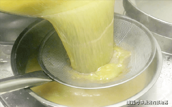 关火将鹅肉捞出,挑出香料不要,然后将鹅汤用密漏过滤一遍。