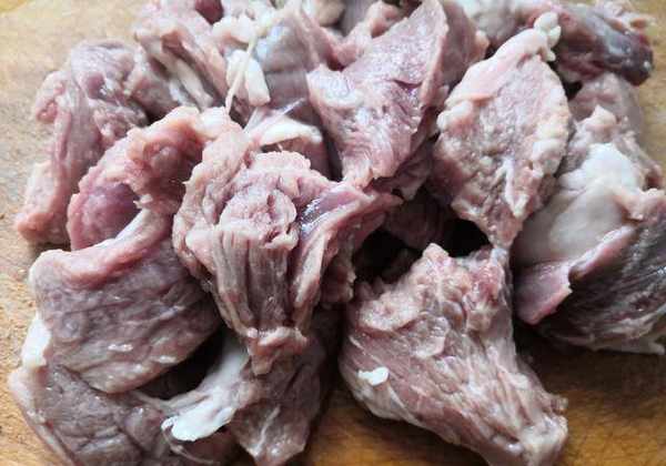把牛肉切成小块,在水里泡半个小时,然后清洗干净。再把牛肉尽可能切得小一点。