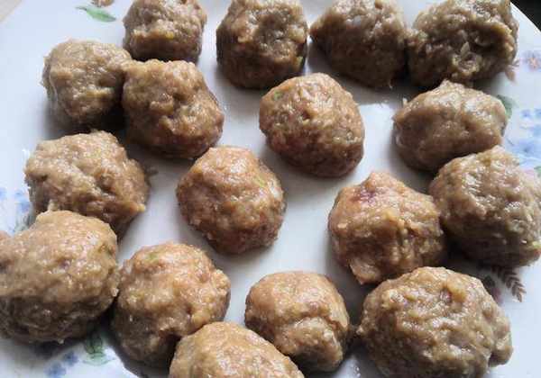 接下来,把它团成一个一个的小牛肉丸子。团完以后,有两种处理方法: