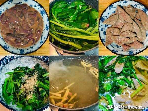 原料:猪肝200克,菠菜200克,姜丝、酱油、料酒、淀粉、香油、胡椒粉、食盐、生抽适量。