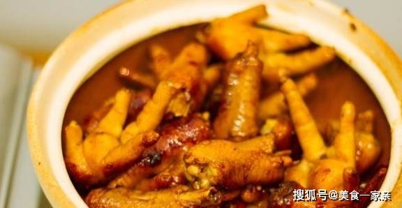 第三步,腌制好的鸡爪倒入砂锅中,加入适量水,水要一次加够量,将鸡爪全部淹没即可,煮开转中小火慢炖30分钟。不要着急将鸡爪盛起,盖着锅盖继续浸泡半个小时,鸡爪吸收了汤汁,涨的特别饱满,肉质Q弹,一咬一大块,谁说鸡爪没有肉,试试这么做,让你吃个够。