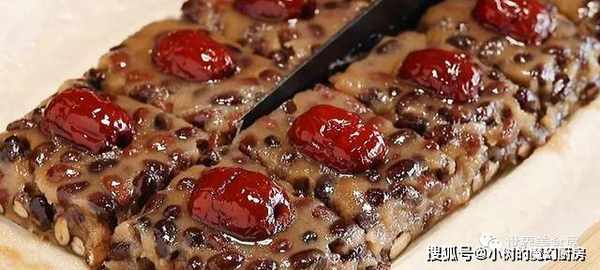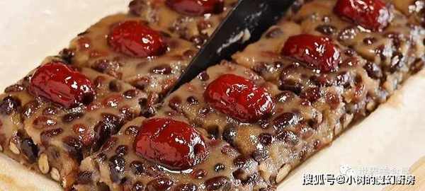 第四步,蒸熟的红豆糯米糕,将它取下来切成小块就可以吃了。
