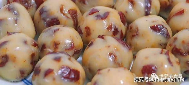 第五步,蒸熟的红枣丸子又香又软。一个个糯唧唧的,正好一口一个,。这个红枣丸子。虽然没有添加白糖在里面。但吃起来就有一股红枣的香甜味。非常的好吃,有营养。而且可以存放两三天不坏。