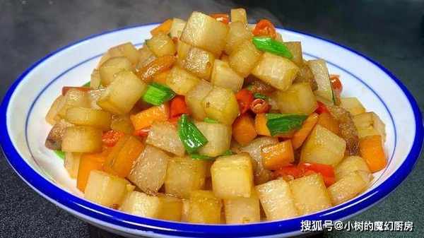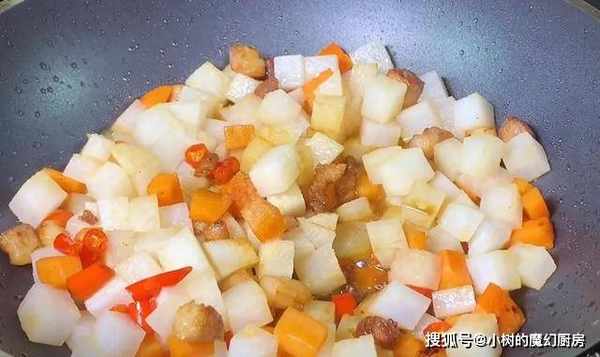 1、首先将白萝卜洗净,去皮,切成丁备用。