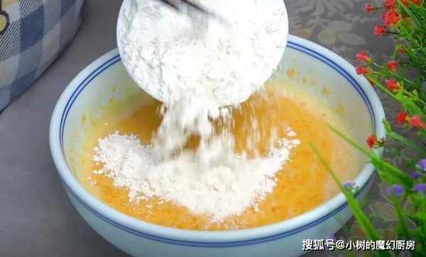 2、蒸熟的南瓜放碗中,加砂糖、面粉、酵母混合搅融,变成面团。