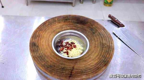 2.炒空心菜可以多放一些大蒜成菜更香,把大蒜逐个拍散切成末放入盆中,再抓入几粒干辣椒备用。