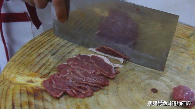 羊肉一块,洗净以后,逆着羊肉的纹理切成薄片。
