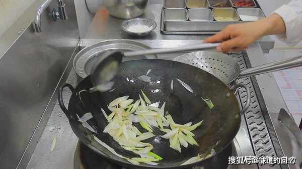 所以要先把大葱炒至断生。锅内烧油,油热后倒入大葱段,开始翻炒,把大葱炒至断生后倒出。